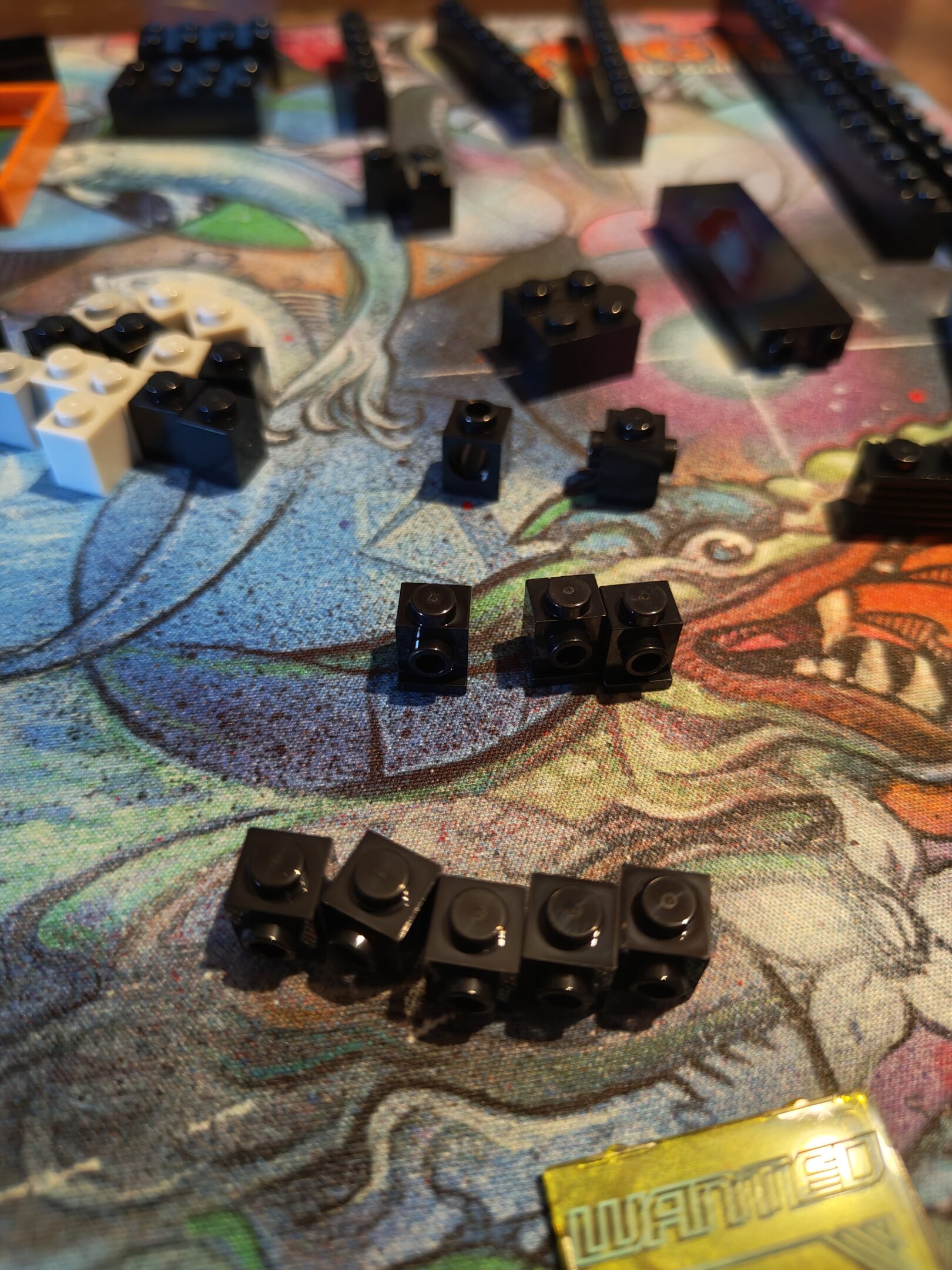 My sorting style — generally by size and/or typeAll of these are different. The ones on the bottom of the picture have a solid back. Middle ones have a hollow back. One above that to the right has two pegs (instead of a solid or hollow back). The one to the left of that is a corner piece (two pegs, rounded edge). To the left of those are just plain 1x1x1 blocks… but the black plastic is like vantablack and it’s hard to see themLess text, more building.Wasn’t sure what this was but since I’m adding these after the next gallery it’s a queue for the info desk?Angular wallOne of the first “neon” (led + acrylic) signs