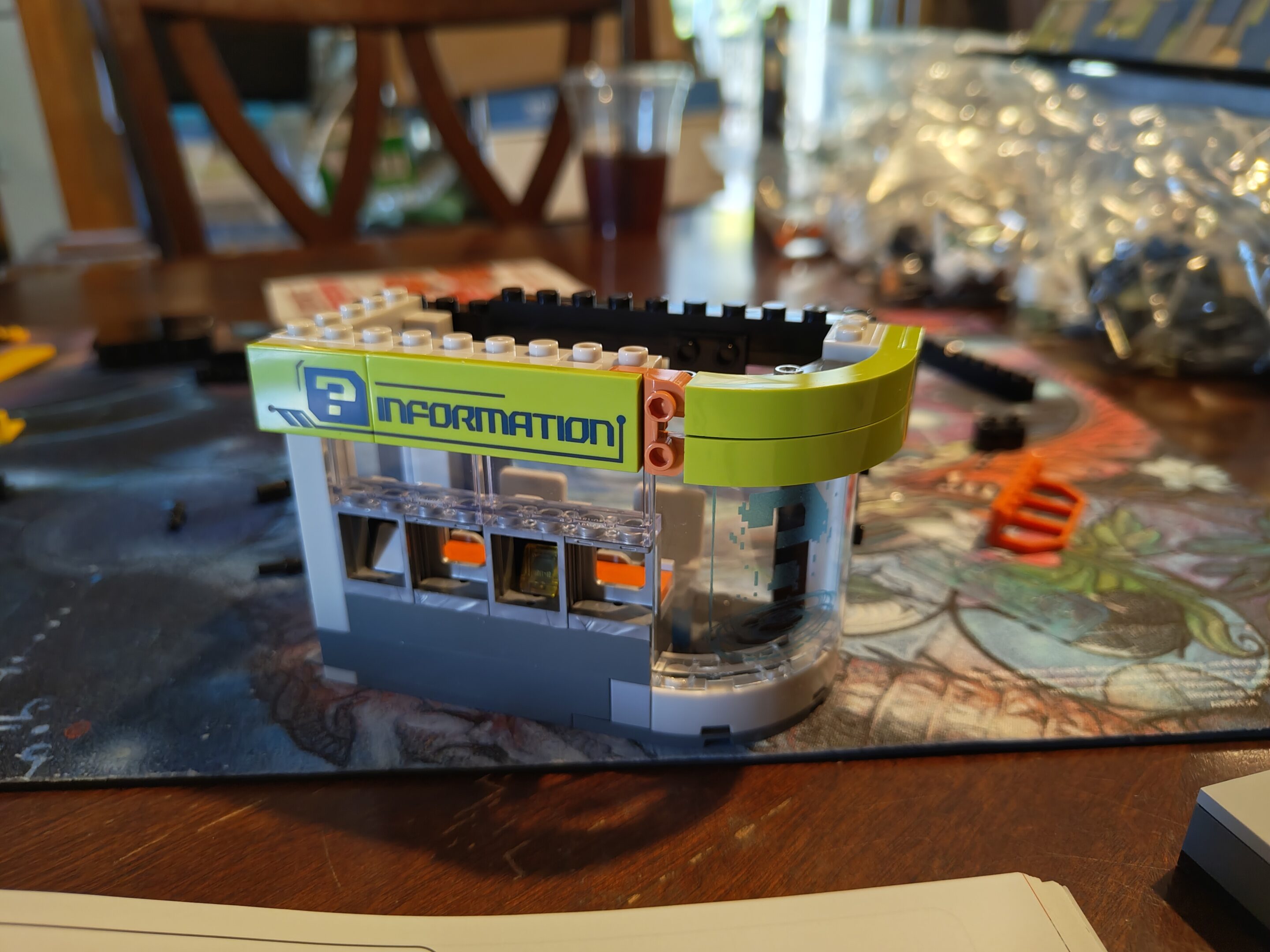 My first errata page(s). They had to fix a page in book one and a page in book two (there are three books)Running a little lighting and some stairsInformation booth seems helpful. Staffed by actual people in the future though? I doubtInfo booth mounted on a hinge so it can swing in and outFacade workThat thing in the corner was so damn hard to put togetherThat lighting I ran earlier was the light for inside the boothAnd this little light on the top right too