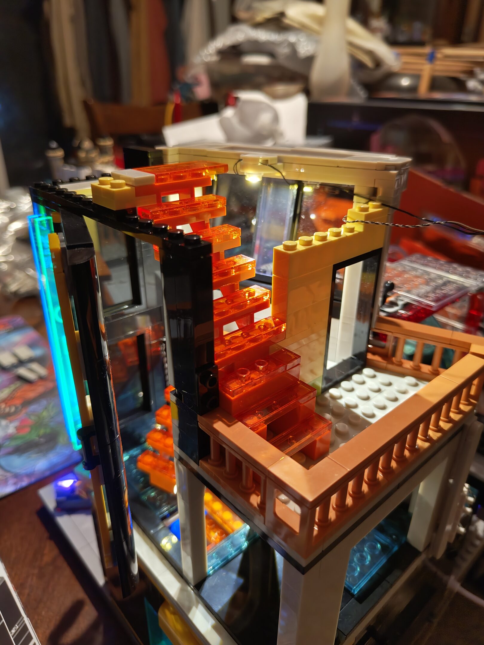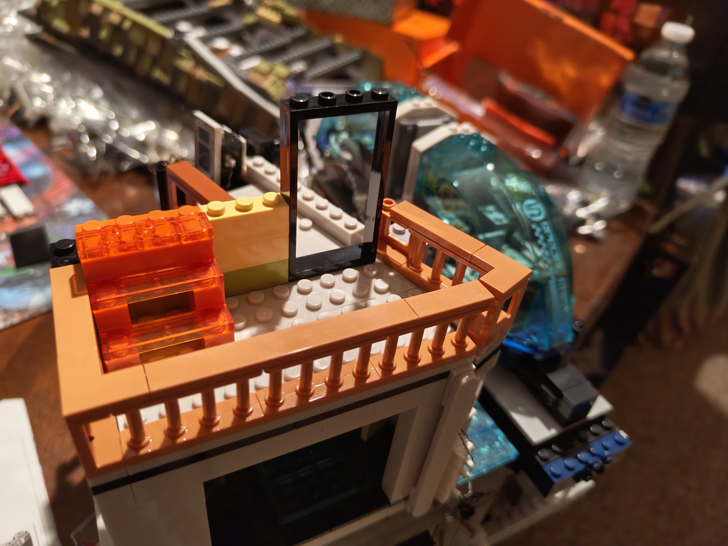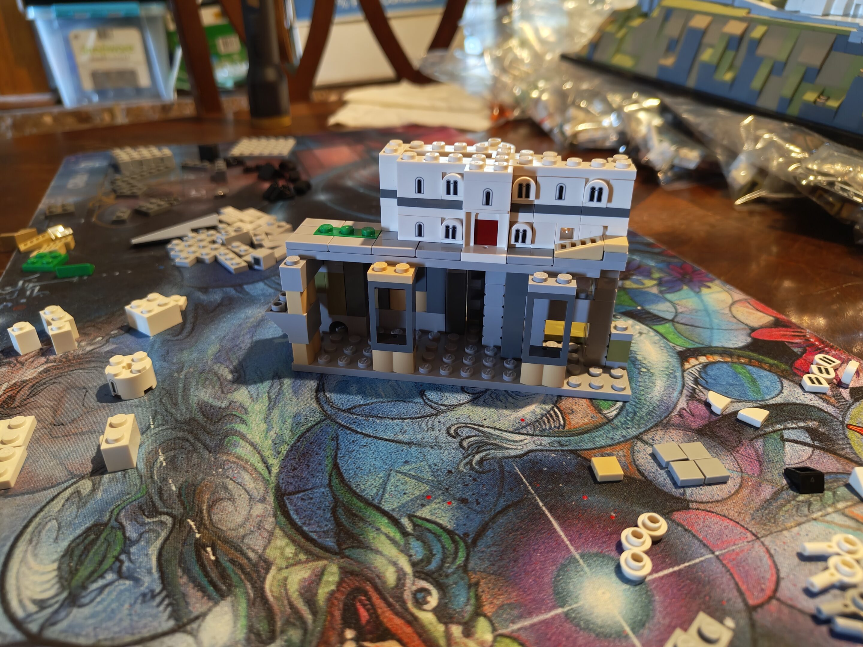 small progress on the train station today too, added a little bit of 3rd story here’s some pictures. on the plus side i checked the instructions and the next step doesn’t have any special parts (so no wiring) so i might be able to have her help me out with it