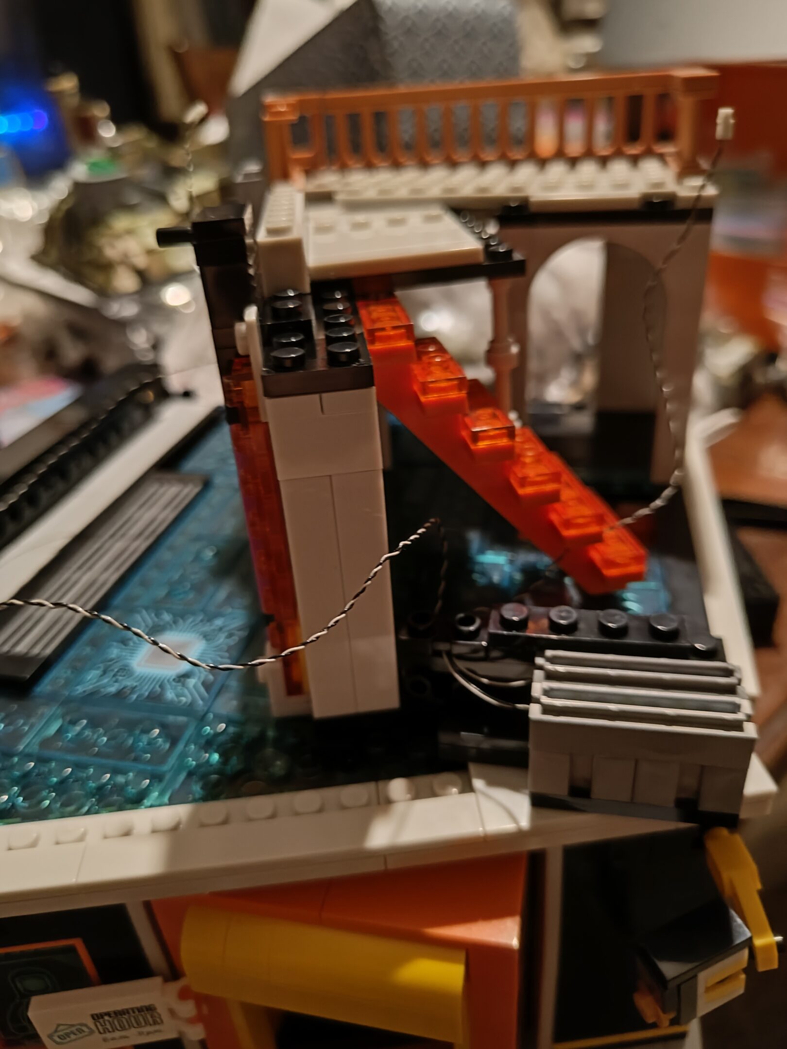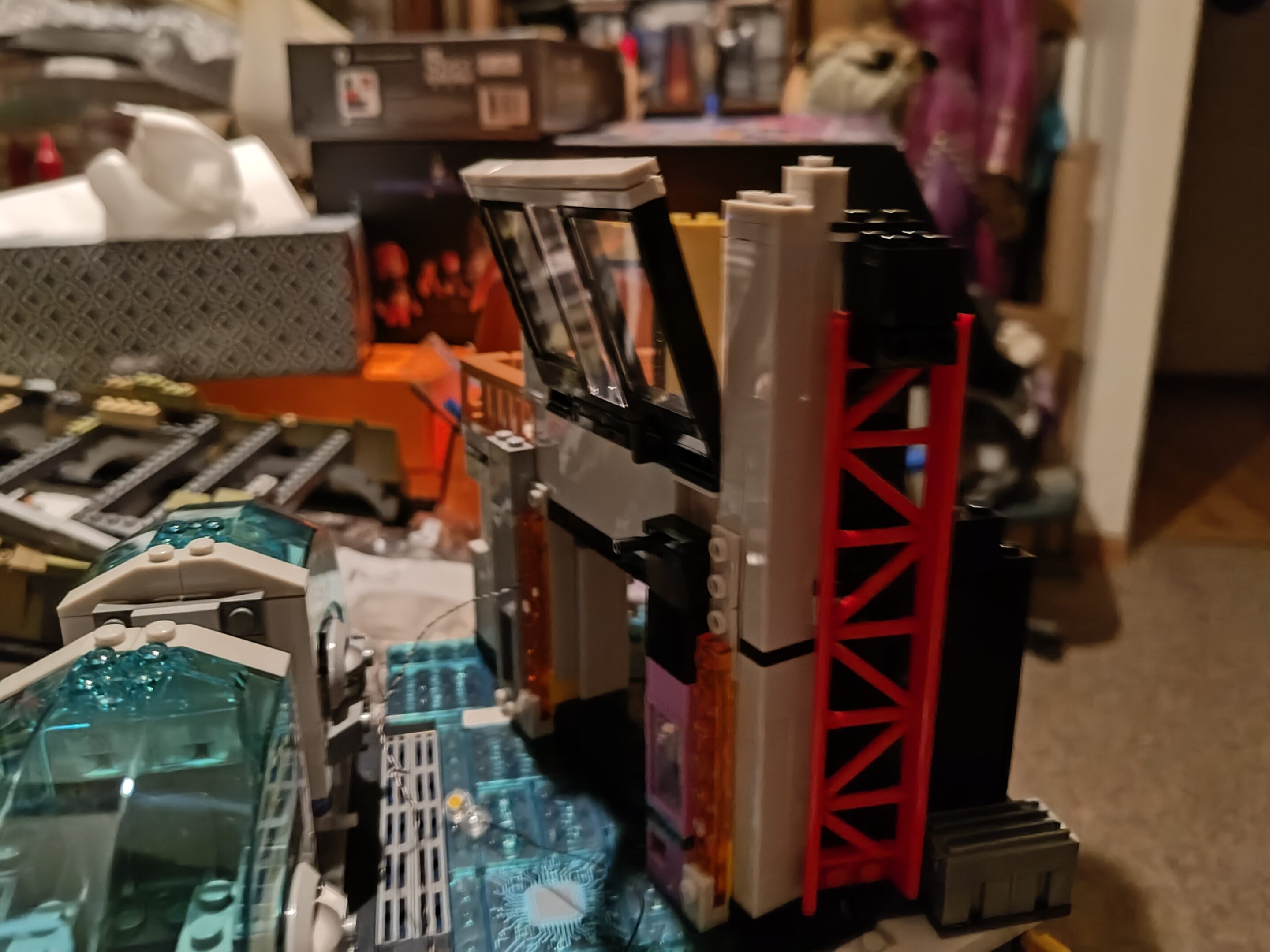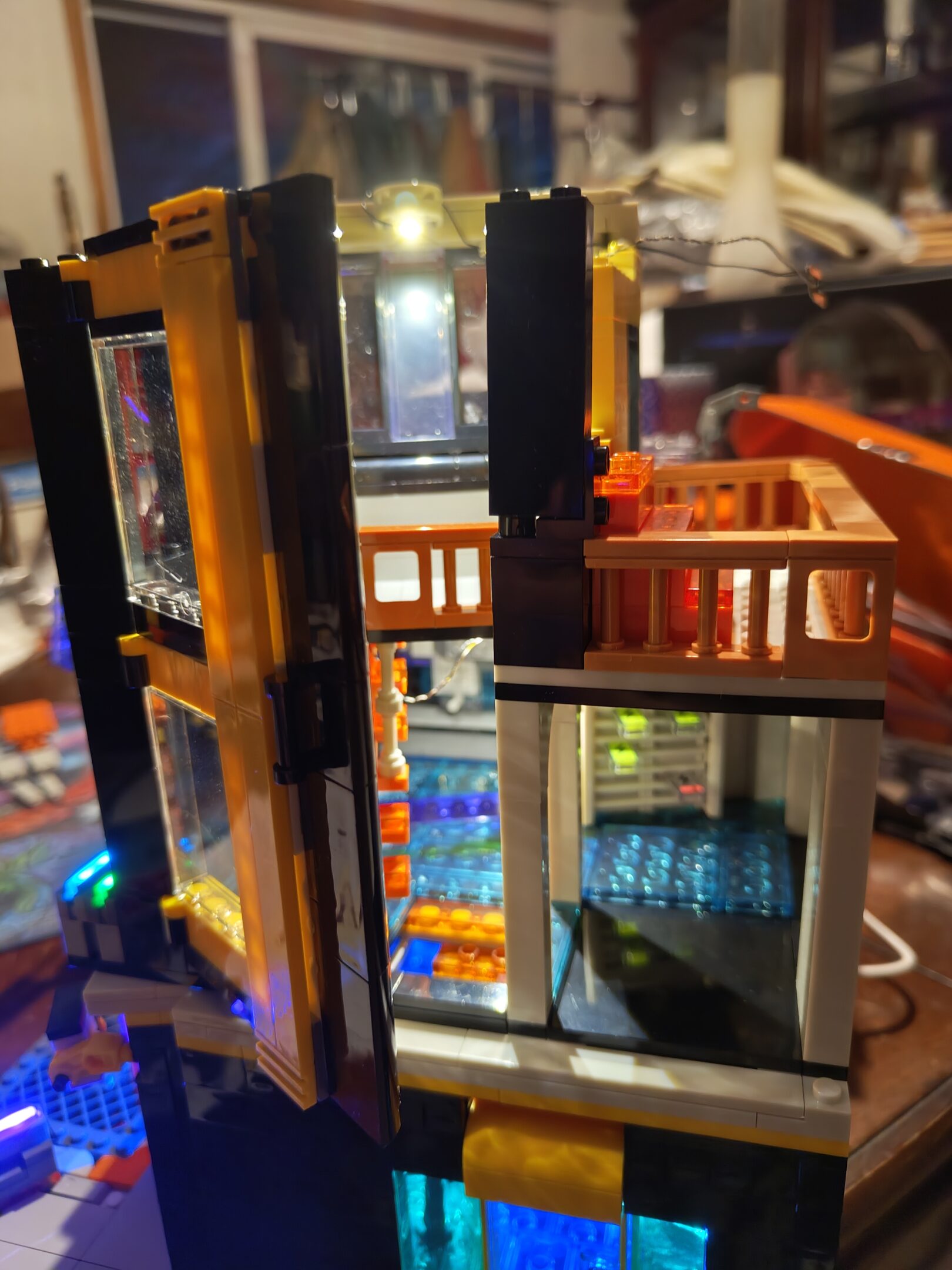 small progress on the train station today too, added a little bit of 3rd story here’s some pictures. on the plus side i checked the instructions and the next step doesn’t have any special parts (so no wiring) so i might be able to have her help me out with it