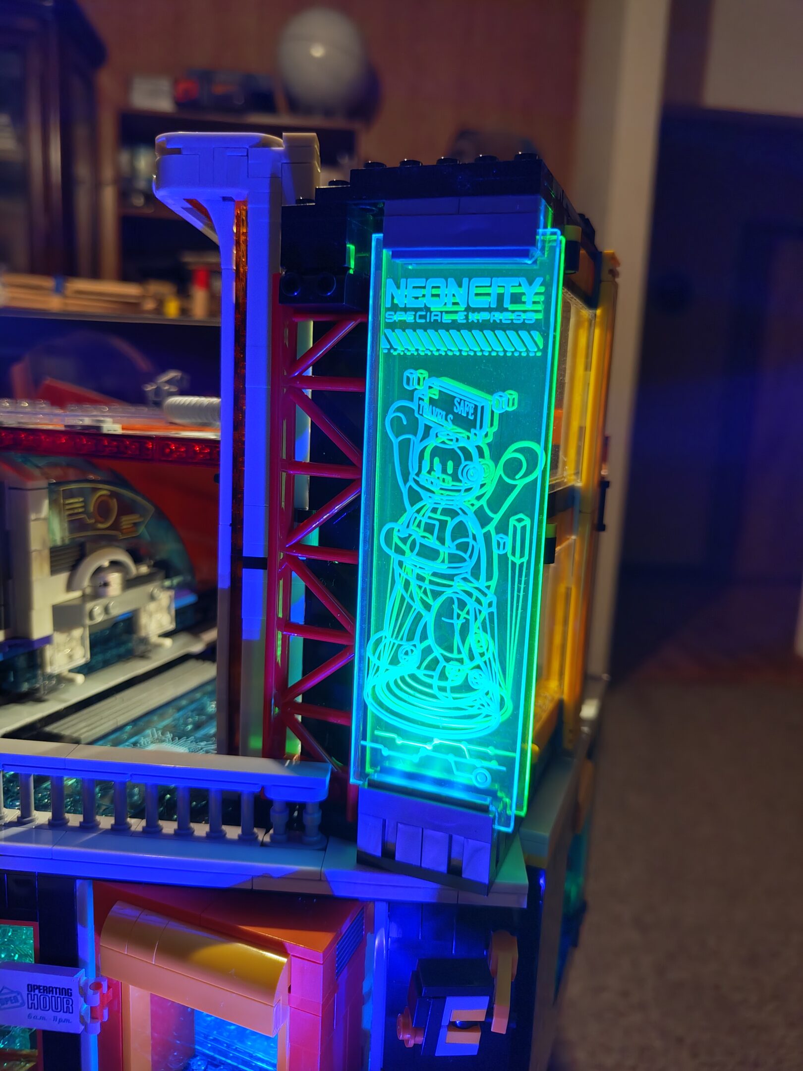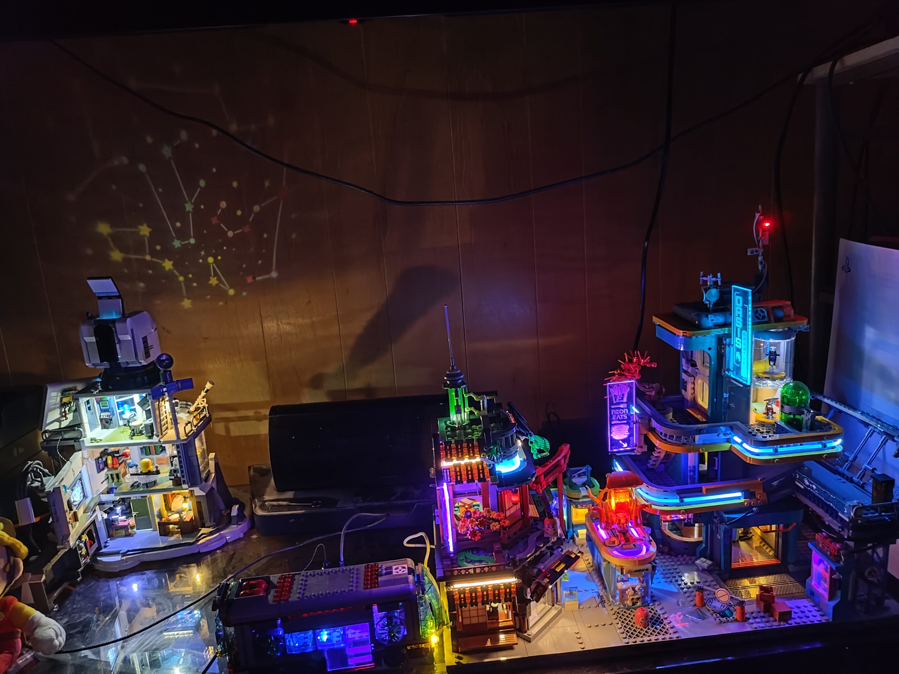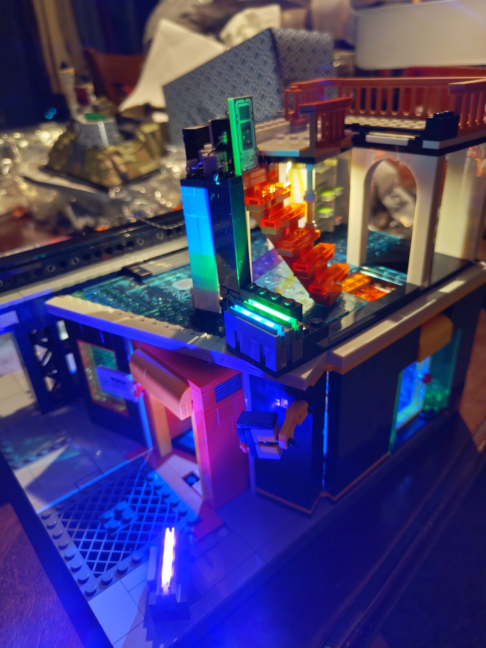 finished up today, sunday, july 27th. it’s so neat how these will just click together and share power. i really, really want more of these cyberpunkish sets soon because i am enthralled.