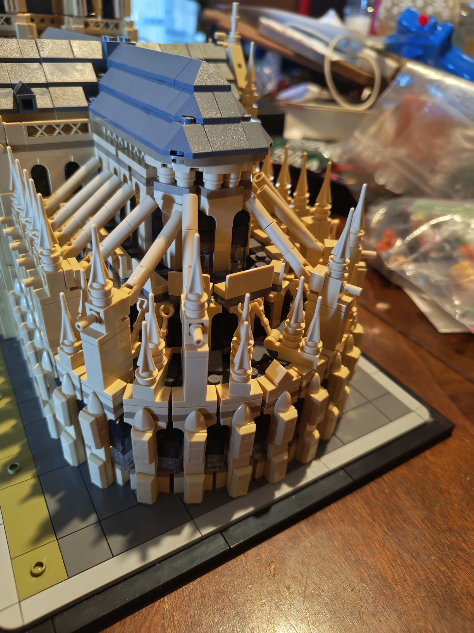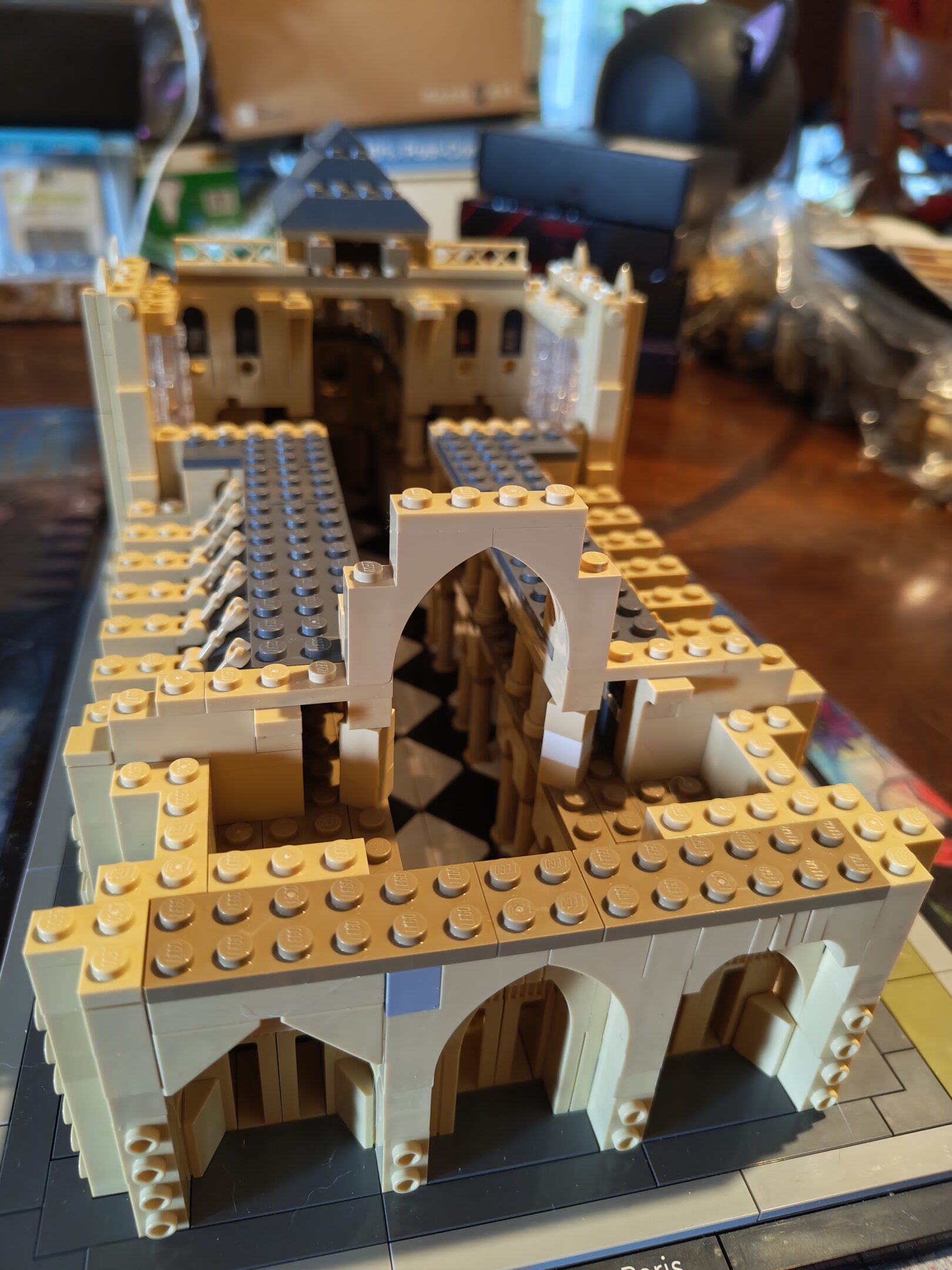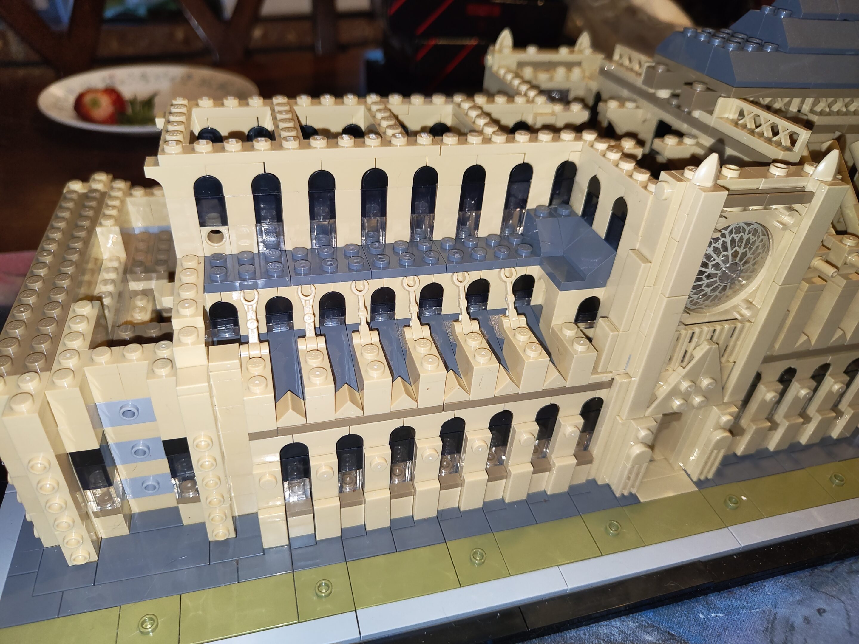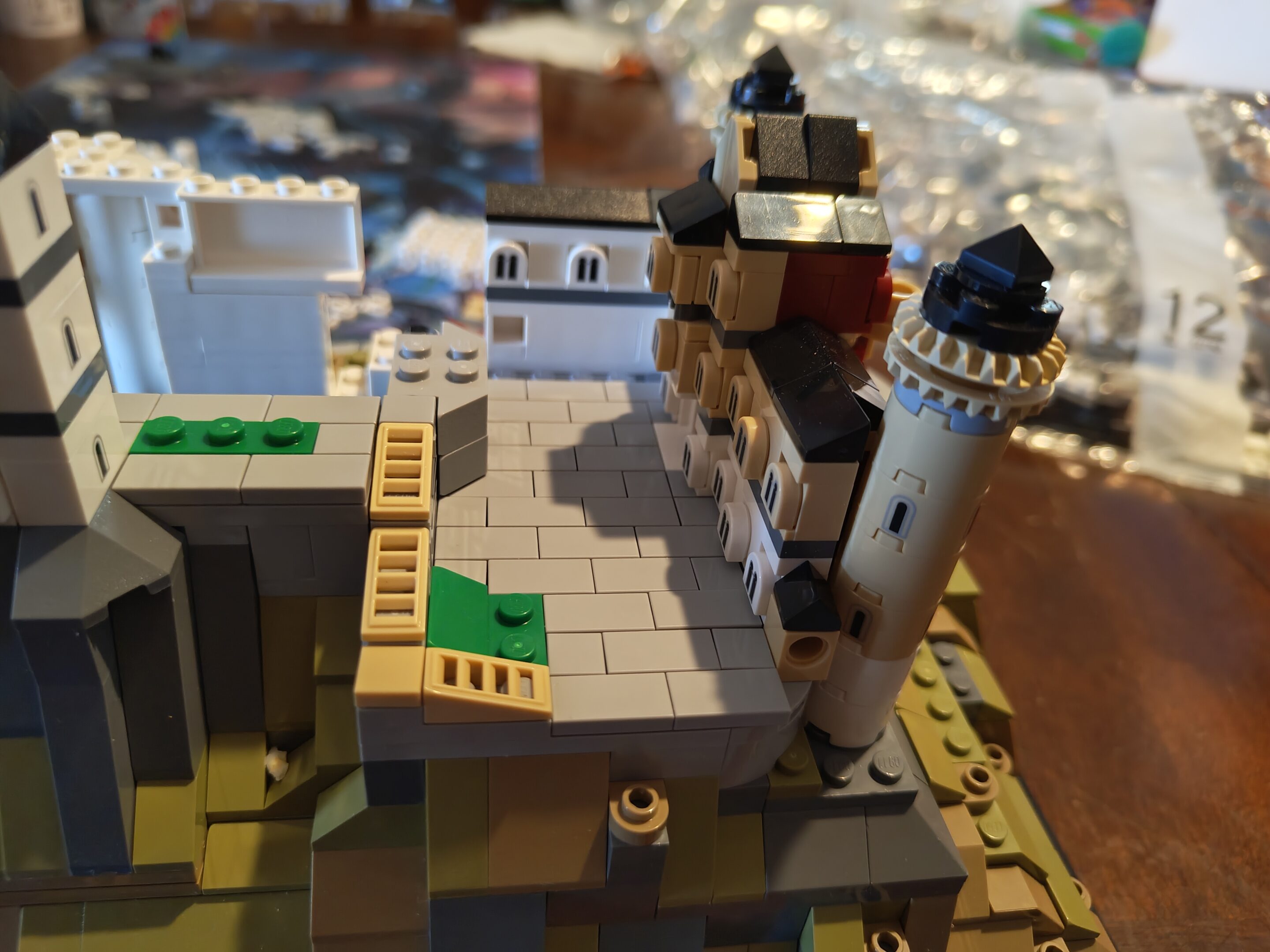 Brain fried today. Captions gonna be slackingAnother spiral staircase tower? Were the other ones?First row of windowsHaven’t really taken many pictures of the back but there was a ramp and windows here this timeFrontRear with mini courtyardAttached to the main structure. The angle tower here was neat and I was wondering what was going to go in that space but it was thisFull-size courtyard. This is where people gather for guided tours of the real thing. Maybe I’ll find some minifigs to put here