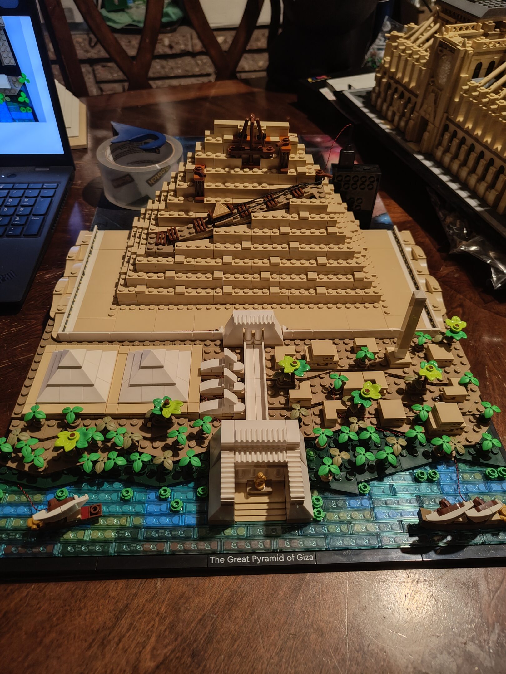 we finished up today (thursday, august 21st 2025) and gonna put it into the display cabinet this weekend with the rest of our lego projects, pretty stoked about the next one (pyramid of giza) and the one after that too. maybe by the time we’re done with the next two there will be some more new sets out and we just kinda keep chaining them. gotta have something to do in retirement, right?