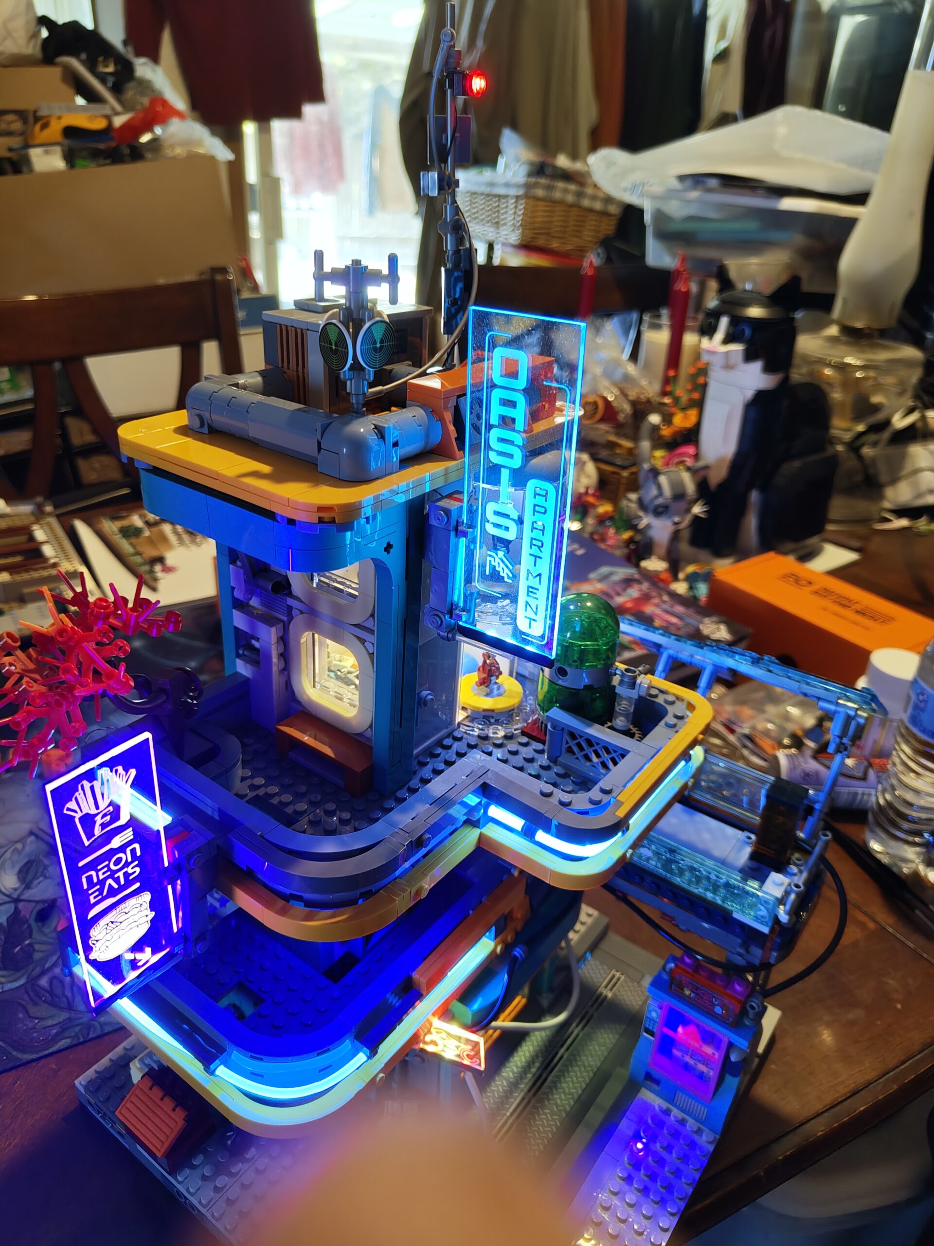 finished up today, sunday, july 27th. it’s so neat how these will just click together and share power. i really, really want more of these cyberpunkish sets soon because i am enthralled.